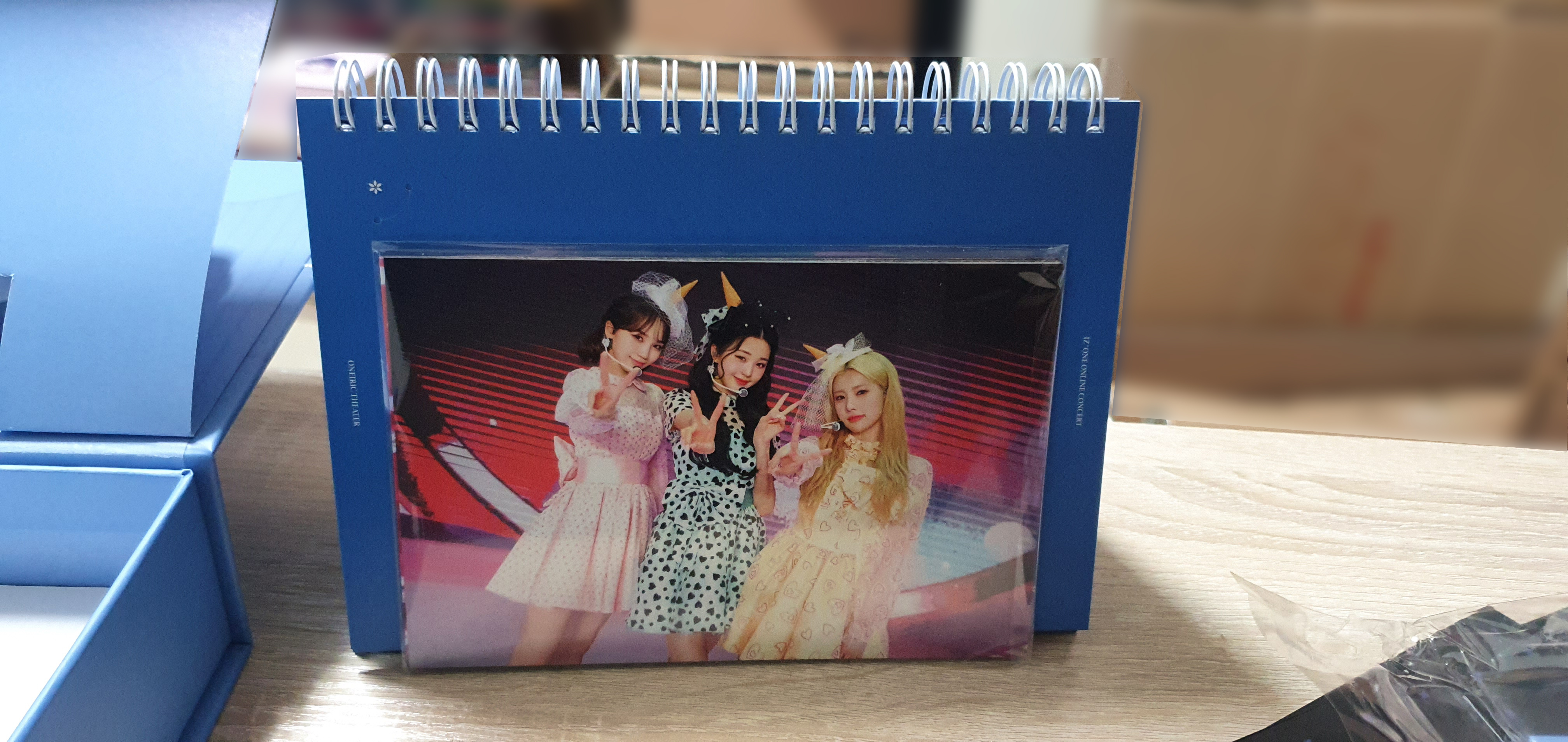 뒤쪽에 있는 저 달력은 뭔가 했더니, 유닛 포토카드와 폴라로이드 세트를 끼워 놓을 수 있는 스탠드바이더라고 하네요. 구성품이 점점 발전하고 있는 거 같습니다.